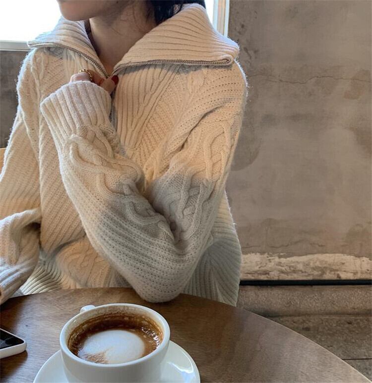 ジップを開けて着ても、閉めてタートルニットでもどちらも可愛いです◎