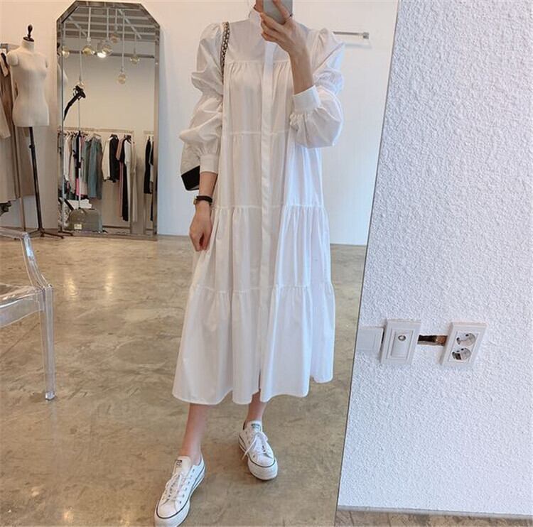 1枚でワンピース、上からニットを合わせたコーデもおすすめです◎