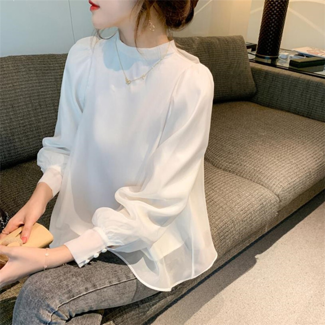 バックリボンシフォンシャツ